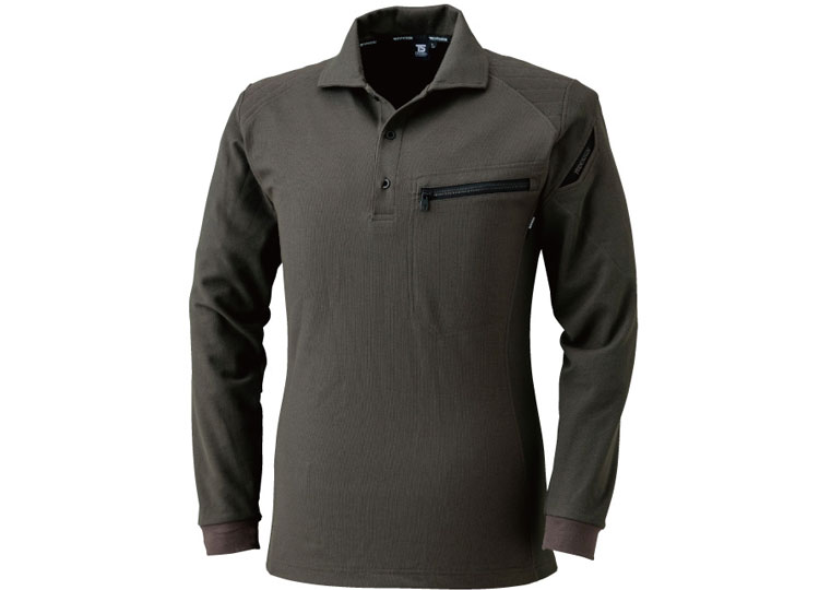 肌に触れる面積が少ない、通気性に優れた交織鹿の子使用のワークニット長袖ポロシャツ。肩補強を入れたタフモデルなので、物を担いだ時にも安心。左胸ファスナーポケット・左袖部分マルチスリーブポケットも完備。レディースシルエットも展開しているので、性別を問わず通年ご利用いただけます。