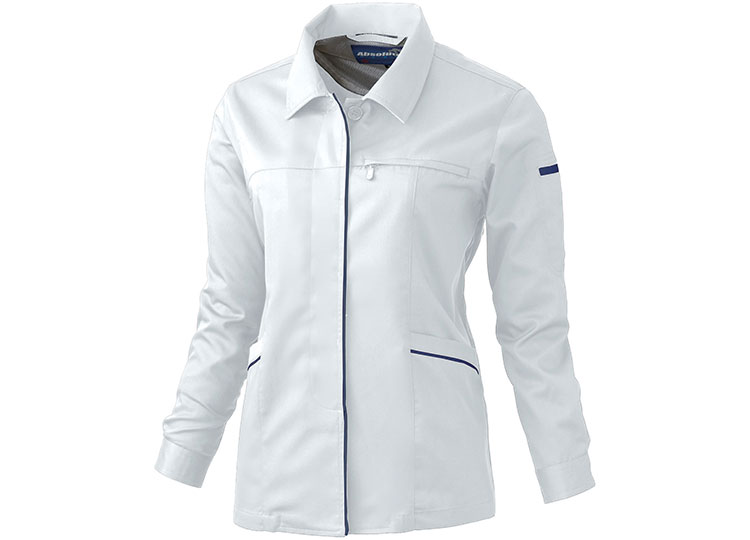 業種を問わず、様々なシーンで活躍する、肌当たり柔らかで耐久・制電性に優れた素材を使用。医療・介護現場など、対応するレディース用長袖スモック。電気設備や精密機械、危険物を扱うデリケートな現場でも安心です。デオドラントテープが不快なニオイを軽減し、心地よい着心地が継続します。