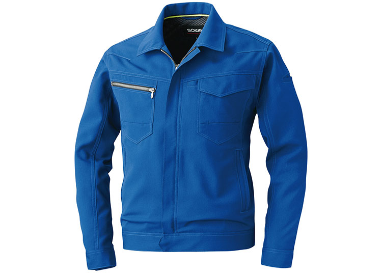 両サイドの背中に入った切れ込みで上半身の動きがスムーズ。窮屈感を感じさせない、適度なストレッチ性と通気性に優れた涼しい着心地の長袖ブルゾン。制電性抜群なので、電気設備や精密機械、危険物を扱う繊細な現場でも安心です。生地裏側の肌離れが良くベタつきにくい。信頼の日本製サマー裏綿を使用。
