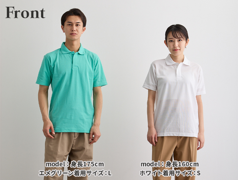 鹿の子素材の半袖ポロシャツは、介護職員のワークウェアに最適です。袖裏部分には体毛などの落下を防ぐネットを、襟元には落下の心配がないスナップ仕様のボタンを採用。食べ物などに混入するリスクを軽減します。全5色から選べるカラーバリエーションと、SS~5Lの豊富なサイズ展開が魅力です。