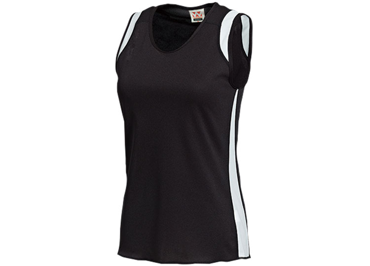 吸汗速乾性に優れた女性向けランニングシャツ。衿ぐりとアーム部分は適度に絞り、露出を抑えたデザインです。切り替え部分は特殊なミシンを使った四本針縫製で肌の摩擦を軽減。後身頃は長めでめくり上がりにくくなっています。陸上以外にも運動着全般として、自衛隊などの団体・企業で幅広く使用されています。