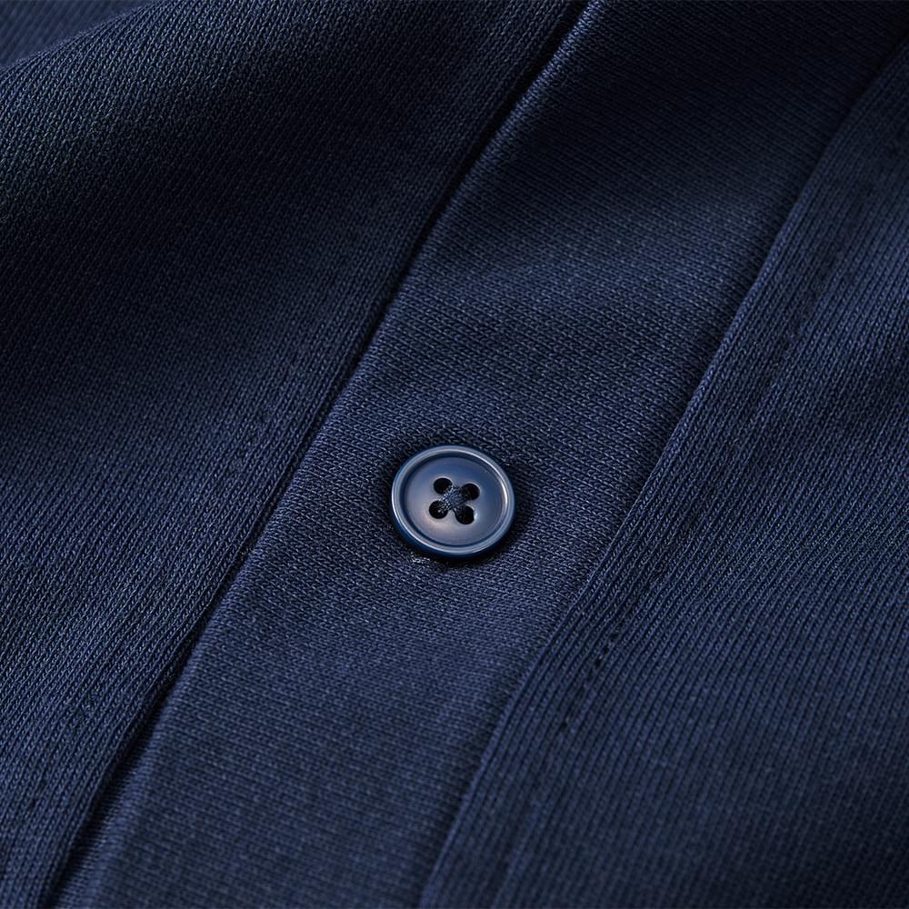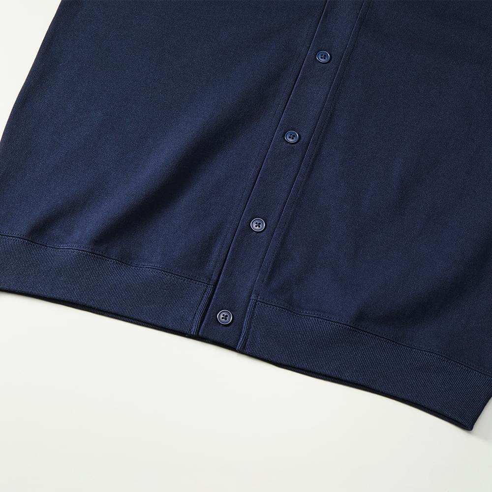 - ■前立ては身頃と同じ天竺素材を使用 ■袖口はリブ仕様でフィット感を確保 ■シームラインは耐久性の高いダブルステッチ仕上げ ■光沢のある小ぶりなボタンは身頃と同色 ■裾口はやや短めのリブ仕様