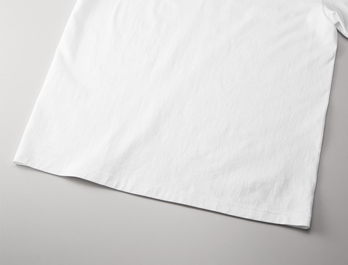 生地には、6.0オンスのオープンエンド糸を使用した、アメリカンテイストのヘヴィーウェイトTシャツ。吸湿性に優れた粗野な質感と特有のシャリ感、絶妙な長めの身丈やオーバーロック仕様のミニマルな首もとなど、着るほどに味わいが増す無骨で洗練された一枚です。