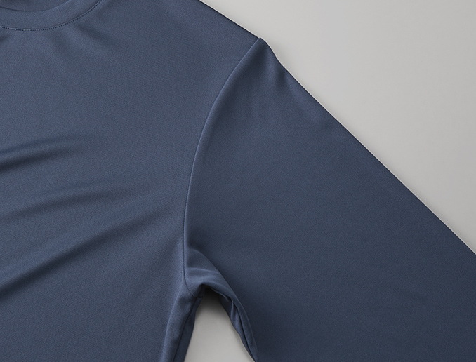 吸水速乾性・UVケア・伸縮性を備えたリサイクルポリエステル製のロングスリーブTシャツ。スムース編みによる快適な肌ざわりと透けにくい自然な光沢感が特徴。アンダーウェアとしても一枚でも活躍し、スポーツにも日常にもフィット。サステナブルな素材でオールシーズン着用可能。