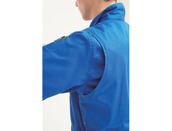 ファスナータイプの胸ポケットは前屈みになっても入れたものを落としにくく便利な上、デザイン的にもスタイリッシュな印象を与える、半袖タイプのつなぎです。携帯電話ポケットやペン差し、アコーディオンプリーツなど定番機能ももちろんあります。カラーバリエーションは全7色展開。