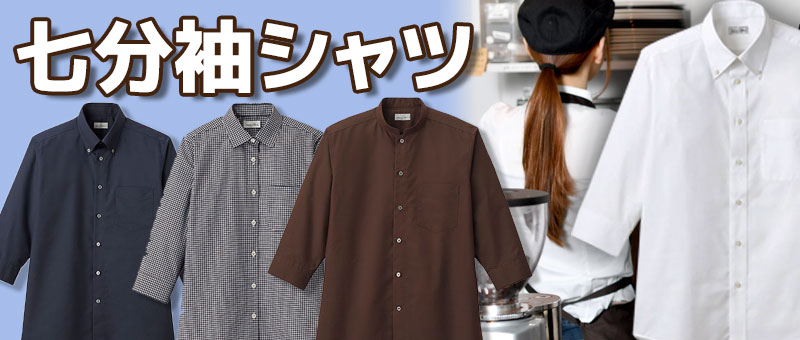 七分袖シャツは体温調節が容易で、寒暖差の激しい季節の変わり目でも快適!長袖を腕まくりした時のような絶妙な長さで、手作業がしやすいのも特徴です。手首が見えるので長袖シャツに比べすっきりした見た目で、清潔感がある大人っぽい印象を演出。オフィスワークや洗い物・手仕事の多い飲食業のユニフォームに最適です。