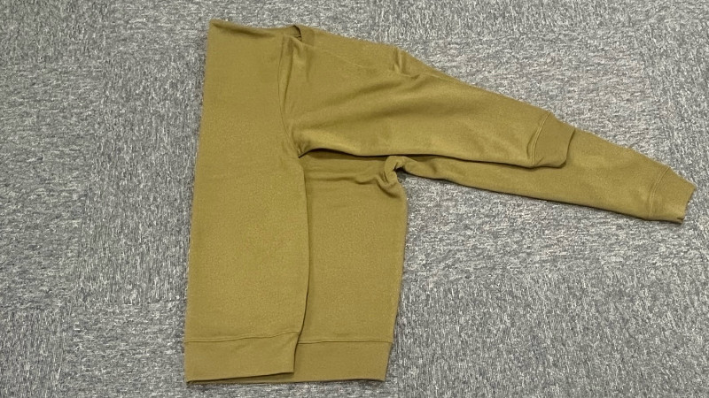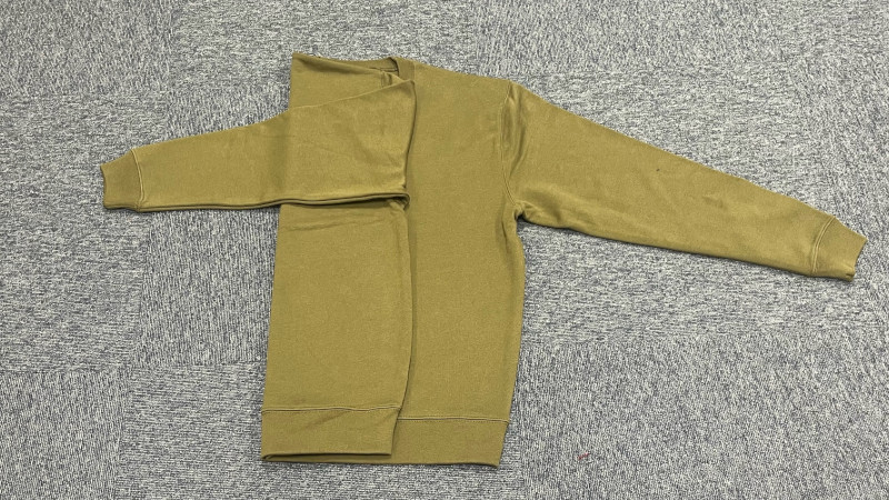 手順1:スウェットの横幅が、約3分の1になるように左側を内側に向けて折る。