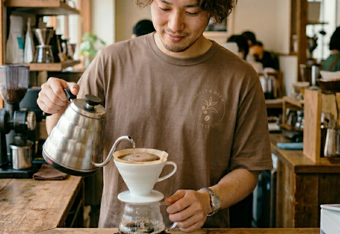 カフェを彩る、オリジナルのアースカラーTシャツ。