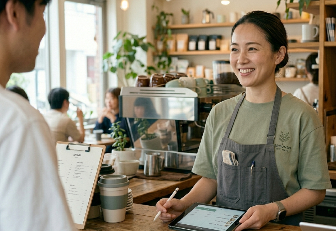カフェ・コーヒーショップのスタッフウェアとして活躍するシーンをご紹介致します。